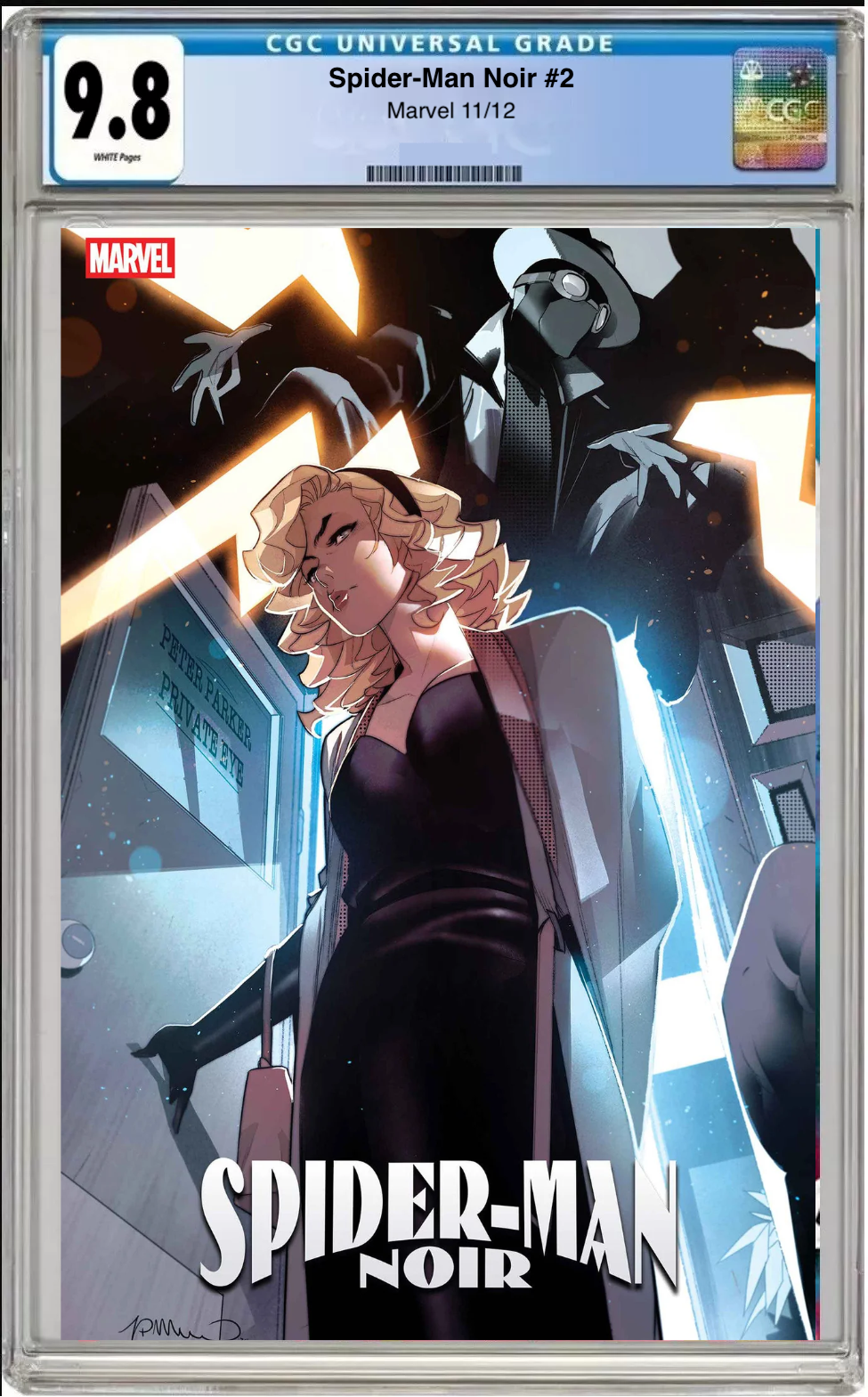 Own the CGC 9.8 graded Spider-Man Noir #2 featuring the Main Cover. This issuecontinues the gritty, noir-style Spider-Man saga and is a must-have for collectors of darker Marvel storytelling.